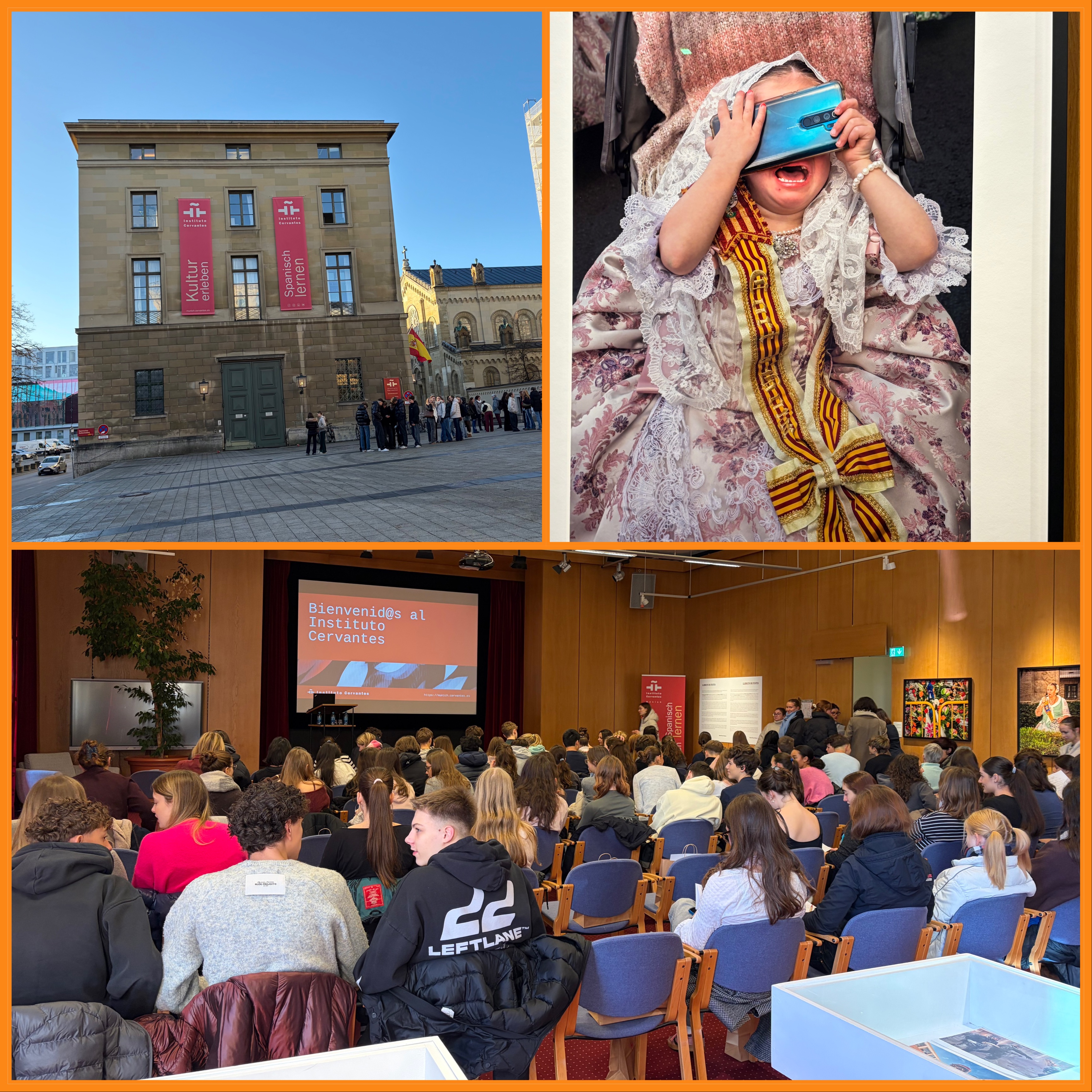 Die Klasse 10d besuchte im Rahmen ihres Spanisch-Unterrichts das spanische Kulturinstitut am Marstallplatz. Auf dem Programm standen Informationen zu Aktivitäten des Instituto Cervantes, eine Foto-Ausstellung über Valencia, eine Führung durch die Bibliothek und ein Kahoot zu spanischer Musik.